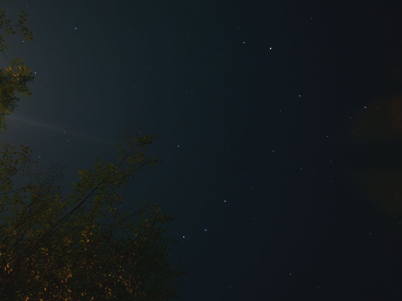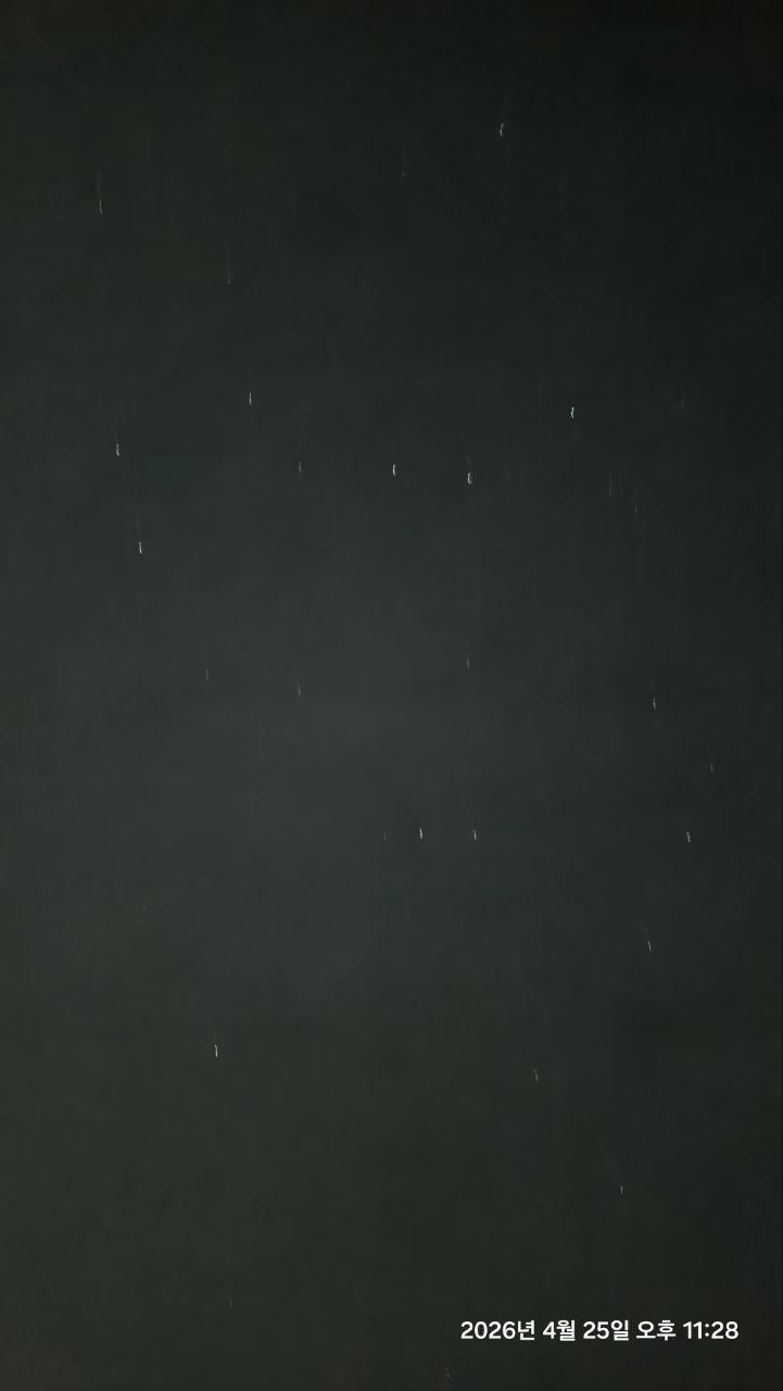 밤 11시 28분에 별을 찍었다. 롱 노출로 찍어서 별들이 흐릿하게 줄로 남아 있는데, 그게 오히려 더 신비로워 보인다. 나무 가지들이 실루엣으로 보이고, 하늘에는 별들이 수없이 많이 떠 있었다.